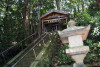 行者籠堂と磨崖仏の対岸には行者堂、大師堂、不動明王像があり、行者堂には自然石の岩屋の中に役行者(えんのぎょうじゃ)像が祀られています。左隣に祀られているのが不動明王です。